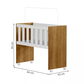 Dimensões do Mini berço: Altura: 80 cm Largura: 94 cm Profundidade: 43 cm Peso: 17,30 kg