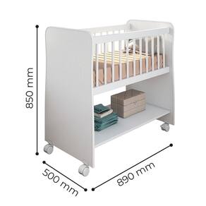 ESPECIFICAÇÕES: Estrutura em MDP Pintura UV Certificado compulsório do INMETRO 006 810/2017 Grades fixas de pinos revestido 4 Rodízios sendo 2 com travas Acompanha suporte para mosquiteiro Colchão incluso