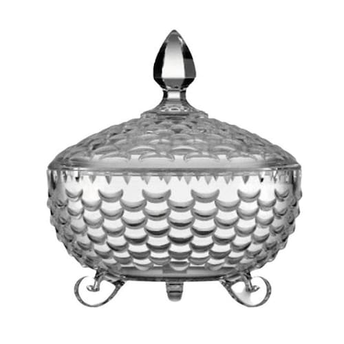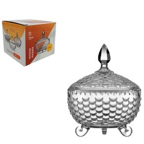 Mini Bomboniere Potiche Baleiro Açucareiro com Pé Tampa 240ml Mini Bomboniere, baleiro, açucareiro de vidro com 3 pés e tampa com capacidade para 240 ml Ficha Técnica