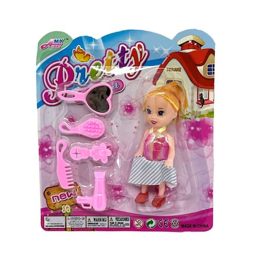 Encante as crianças com a Mini Boneca com Vestidinho e Utensílios de Beleza. Este adorável conjunto traz uma mini boneca estilosa com um vestidinho delicado, acompanhada de uma seleção completa de acessórios de beleza, incluindo espelho, pente, escova, presilha e um secador de brinquedo. Perfeito para brincadeiras de faz de conta, este kit permite que as crianças explorem sua criatividade enquanto cuidam da boneca e criam momentos mágicos de salão de beleza. Feitos com materiais seguros e de alta qualidade, estes itens são ideais para estimular habilidades motoras finas e proporcionar diversão garantida.