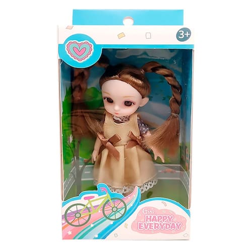 1 Mini Boneca Gina Happy Everyday com Vestido Bege 15cm T048 - BBR Toys