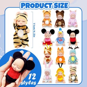 O pacote inclui: 12 peças de mini bonecas. Tamanho: 11 cm. Esta mini boneca é adequada para pessoas jogarem alguns jogos interessantes ou RPG com suas famílias, o que pode não apenas atrair facilmente a atenção de pessoas de diferentes idades, mas também desenvolver sua coordenação olho-mão, destreza dos dedos, criatividade e imaginação ao ajustar o corpo da boneca. - Mini bonecas: este conjunto de mini bonecas de presente inclui 12 mini bonecas de 10 cm, cada boneca está vestida com uma fantasia de animal diferente, muito fofa e realista para as crianças compartilharem e brincarem juntas em casa - Confiáveis e duráveis: estas bonecas realistas e realistas são feitas de material de PVC lavável, resistentes e duráveis, podem ficar com você por um longo tempo e podem ser limpas com um pano úmido quando estiverem sujas; as roupas também são cuidadosamente feitas e costuradas, podem ser lavadas à mão ou à máquina e não são fáceis de serem rasgadas ou desbotadas - Variedade de estilos: os brinquedos fofos de bonecas pequenas são projetados com 16 estilos de roupas diferentes, incluindo coelho, gato, peito, girafa, alce, pato, abelha e outros padrões, o que torna as bonecas mais adoráveis e inovadoras - Posição ajustável: cada mini boneca tem 10 cm de altura e 5 articulações removíveis, incluindo uma cabeça giratória, articulações removíveis das mãos e dos pés; este design muda a posição da boneca para que ela possa realizar diferentes movimentos e poses - Presente perfeito: estas bonecas realistas e realistas são o presente perfeito para qualquer ocasião - Natal, aniversários, Dia dos Namorados, Páscoa, Dia das Crianças, Ação de Graças e muito mais; seja como brinquedos ou colecionáveis, elas podem inspirar criatividade e imaginação e trazer alegria infinita para as crianças