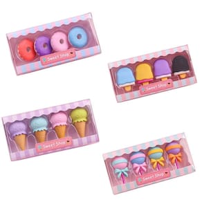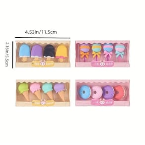 Que tal essas mini borrachas escolares divertidas e fofas para apagar seus erros com estilo? São quatro unidades de cores e formatos diferentes, que vão deixar seu material escolar mais alegre e divertido. Você pode escolher entre uma estrela, um coração, um sorvete e um cupcake, todos com detalhes fofos e delicados. Essas mini borrachas são perfeitas para levar na mochila, no estojo ou na bolsa, e também são ótimas para presentear seus amigos. Aproveite e garanta já as suas!