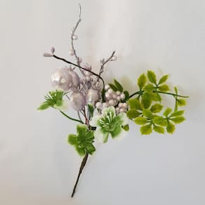 Material: Arame, Silicone, EPS, Plástico e EPS;Peso: 16grCores: Lilás, Verde e Branco,Conteúdo da Embalagem: 1 Galho.