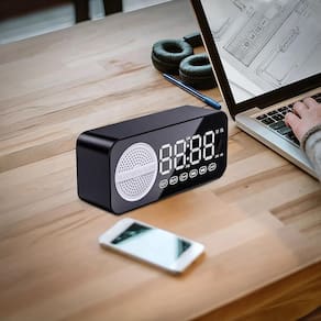 A Mini Caixa de Som Bluetooth com Relógio Despertador Portátil é o presente perfeito para:
