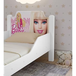 Mini cama branca com adesivo da barbie proteção lateral colchão incluso - Branco