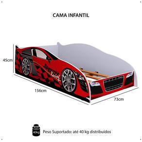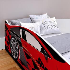 Mini Cama Infantil Carro Corrida Speedy MDF Montessoriana Proteção Lateral Decoração Kids Tema Quarto Menino - Vermelho/Branco - RPM