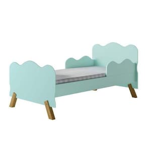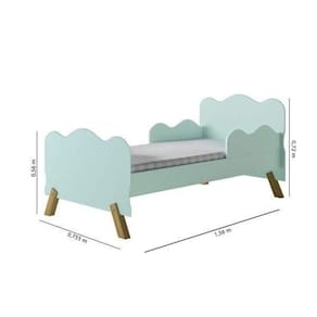 Mini Cama Infantil com Proteção Lateral Menta. A Mini Cama é o produto ideal para os bebês maiores, sendo muito utilizada na transição entre berço e cama de solteiro. A maioria das crianças acaba fazendo essa transição em algum momento entre 1 ano e meio e 3 anos e meio. Apresenta design moderno, com cantos arredondados e barra de proteção lateral, muito seguro, é um produto desenvolvido em 100% MDF e com acabamento em Pintura UV e Lacca PU, qualidade que também aparece no design, auxiliando na decoração do quarto de seus filhos. Tamanho de Colchão: 1500 x 700 mm Ean: 7898196633996