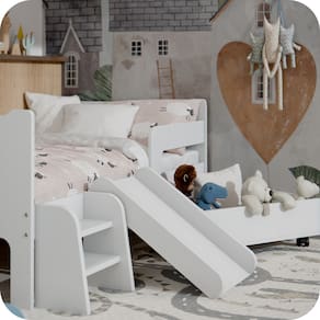 Todos os acessórios (baú, escada e escorregador) acompanham a cama, independente da escolha com ou sem colchão!