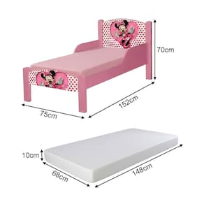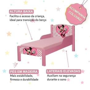 IMAGENS MERAMENTE ILUSTRATIVAS. AS CORES PODEM VARIAR DE ACORDO COM A TELA, MONITOR, ILUMINAÇÃO DO AMBIENTE OU PERCEPÇÃO VISUAL. ITENS DECORATIVOS PRESENTES NAS IMAGENS NÃO ACOMPANHAM O PRODUTO.Mini Cama para CrianÃa com ColchÃo Inclusa e Estrutura em Madeira - Minnie Rosa