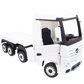 Deixe a criançada pegar a estrada com o Mini Caminhão Elétrico Mercedes Benz Actros Com Carreta! As brincadeiras ficarão muito mais realistas, pois o mini caminhão possui luzes, som e função frente e ré. O design incrível é licenciado pela Mercedes Benz. O mini veículo pode ser controlado pela criança por meio de acionamento de pedal e controle da direção, assim como, por um adulto utilizando o controle remoto. É ideal para crianças de 3 a 7 anos, com capacidade de até 25kg. Possui marcha para frente, ré e neutro. Simplesmente o melhor do passeio com a maior aventura. Altamente resistente e durável, peças de qualidade, selo Inmetro e Anatel, para assim, garantir conforto, e principalmente, segurança para os pequenos pilotos.