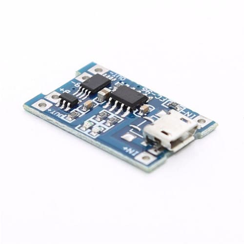 Mini Carregador de Bateria de Litio lithium 1000mA TP4056 Mini Carregador de Bateria de Litio lithium 1000ma TP4056 é muito útil para todos projetos que usam baterias, e tem que manter o controle de carga além de carrega-las. Essa placa utiliza o circuito integrado TP4056 que serve para carregar baterias, tem corrente máxima de 1A e possui sistema de regulagem termal. Tem grande funcionalidade e não faz você perder tempo construindo um dispositivo para fazer isso. É incrivelmente pequeno, tem entrada mini USB assim como pinos na própria placa para soldar os fios de alimentação assim como fios para a bateria. Além disso possui LEDs que mostram se a carga está completa e carregando. CARACTERÍSTICAS: - Chipset: TP4056 - Tensão de entrada: 4,5V a 5,5V - Tensão totalmente carregada: 4,2V - Corrente de carregamento: 1A ajustável - Temperatura de trabalho: -10°C a 85°C - Método de carregamento: carregamento linear de 1% - Precisão de carga: 1.5% - Indicador de carregamento: carregamento luz vermelha, luz verde totalmente carregada - Interface: Conector Micro USB V8 ACOMPANHA: 01 x Mini Carregador de Bateria de Litio lithium 1000mA TP40561