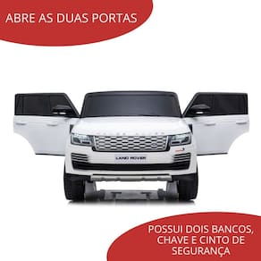 Deixe a criançada pegar a estrada com o Mini Carro Elétrico Range Rover! As brincadeiras ficarão muito mais realistas, pois o mini carro possui luzes, som e função frente e ré. O design incrível é licenciado pela Land Rover. O mini veículo pode ser controlado pela criança por meio de acionamento de pedal e controle da direção, assim como, por um adulto utilizando o controle remoto. É ideal para crianças de 2  a 4 anos, com capacidade de até 25kg. Possui marcha para frente, ré e neutro. Simplesmente o melhor do passeio com a maior aventura. Altamente resistente e durável, peças de qualidade, selo Inmetro e Anatel, para assim, garantir conforto, e principalmente, segurança para os pequenos pilotos.