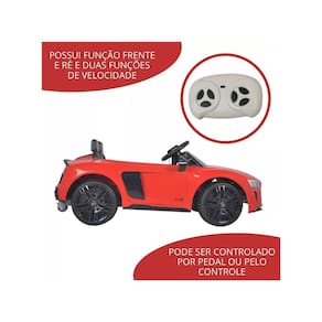 Desperte a emoção nas pistas com o Mini Carro Elétrico Infantil Audi R8 Vermelho de 12V. Design elegante, controle fácil, e potente motor elétrico para garantir uma aventura divertida e segura para os pequenos pilotos.