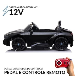O BMW I8 autêntico é um dos melhores carros licenciados do mercado. Com um visual esportivo, o novo BMW I8 vem com itens realistas, que fazem a criança se sentir dirigindo um carro de verdade. Modelado com base no BMW I8, esta versão vem com Bateria recarregável 12 volts, com acelerador no pé, variação de velocidades, marcha ré, som e luzes.