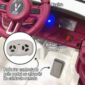 O minicarro pode ser controlado tanto pela criança, através do pedal, quanto pelos pais ou responsáveis, através do controle remoto.