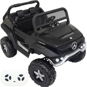 Deixe a criançada pegar a estrada com o Mercedes Benz Unimog Conecpt! As brincadeiras ficarão muito mais realistas, pois o mini carro possui luzes, som e função frente e ré. O design incrível é licenciado pela Mercedes Benz. O mini veículo pode ser controlado pela criança por meio de acionamento de pedal e controle da direção, assim como, por um adulto utilizando o controle remoto. É ideal para crianças de 3 a 7 anos, com capacidade de até 25kg. Possui marcha para frente, ré e neutro. Simplesmente o melhor do passeio com a maior aventura. Altamente resistente e durável, peças de qualidade, selo Inmetro e Anatel, para assim, garantir conforto, e principalmente, segurança para os pequenos pilotos.