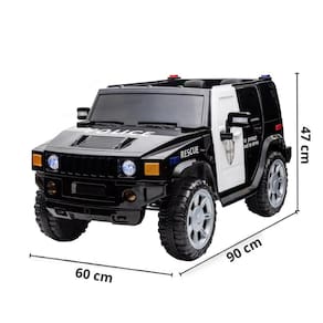 Com esse mini carro elétrico, a diversão está garantida, a criança se sentirá um verdadeiro policial! O produto possui sirene, luzes, som, além de uma bateria recarregável de 12V.