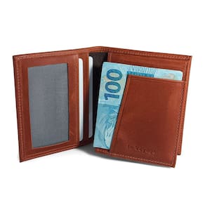 Medidas:Altura: 9,5 cmComprimento: 7,5 cmLargura: 1 cmCaracterísticas:- feita de couro de alta qualidade- modelagem vertical trifold- abertura rápida abrir/fechar sem nenhum tipo de trava - costuras reforçadas, fios de nylon específicos para costuras ''pesadas''- comporta Carteira de Motorista CNH , CPF e diversos outros documentos de tamanhos semelhantes- resistente a águaComposição:- 03 bolsos para cédulas dobradas, cartões ou documentos- 06 compartimentos para cartões ou objetos semelhantesEspecificações:Marca: Le VoyageFabricante: Le VoyageOrigem: BrasilMaterial: CouroGarantia: 3 meses para defeitos de fabricaçãoObs: Os objetos presentes nas fotos não acompanham o produto, são apenas exemplos para demonstrar os modos de utilização.Trabalhamos com mochilas, pastas executivas, bolsas, malas, necessaires, carteiras, pochetes, cintos, porta moedas e muito mais. Todos os produtos são feitos de couro. Marca: Le Voyage