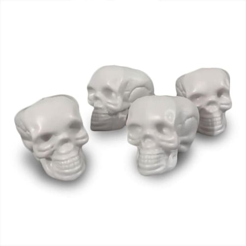 Contém: 4 Mini Caveiras Brancas Beges para decoração de Halloween