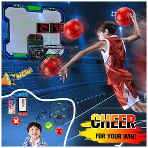 Funções de pontuação eletrônica, contagem regressiva e acompanhamento musical: A mini cesta de basquete vem com funcionalidades de pontuação eletrônica e contagem regressiva (30/60/90 segundos), com dois modos de jogo: ? modo de pontuação sem acompanhamento musical, ? modo de pontuação com música. Cada vez que a criança marca um gol, a cesta de basquete emite sons de torcida e registra a pontuação, tornando o jogo ainda mais empolgante e divertido para crianças e familiares.