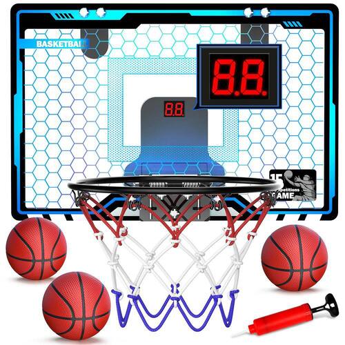 🏀?PONTUAÇÃO ELETRÔNICA E LUZES FRIAS?Esta cesta de basquete coberta vem com pontuação eletrônica e som de aplausos. Cada gol será comemorado com pontos contados e aplausos. Luzes LED frias tornam seus mergulhos mais impactantes visualmente, trazendo a competição de jogos para sua casa! Este mini aro tem 3 modos para praticar, progredir nos níveis e competir com sua família e amigos. A mini cesta de basquete também é uma maneira agradável de fazer uma pausa durante sua rotina diária de trabalho.