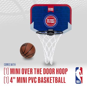 Cesta de basquete Franklin Sports NBA Detroit Pistons Mini Over The Door - Mini cesta de basquete coberta para crianças com basquete - Mini bambolê da NBA Fan Shop para quarto e escritório - Conjunto de mini argolas Over The Door