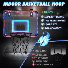 Mini cesta de basquete com placar eletrônico sobre a porta, cesta de basquete interna para meninos e crianças de 10 anos, presente de aniversário, brinquedos esportivos - Equipamento de treinamento esportivo ideal para meninos infantis: Mini kit de basquete para iniciantes focado em objetivos, movimento corporal, habilidade motora fina e coordenação física. O jogo esportivo de basquete interno pode não apenas estimular o desejo das crianças por esportes, mas também permitir que elas aprendam a perseverança e o espírito de equipe. Além disso, seus meninos vão adorar arremessar aros ou jogar um jogo emocionante com seus amigos. Os adultos também podem jogar esta cesta de basquete sobre a porta em ambientes internos para aliviar a fadiga do dia. - Conjunto de cesta de basquete com placar eletrônico: nosso conjunto de mini cesta de basquete inclui 1 placar eletrônico, 3 bolas de basquete, 1 bomba e 1 instrução detalhada. Vem com pontuação eletrônica, a pontuação será calculada digitalmente e exibida automaticamente. O placar eletrônico tem dois modos, um é o modo de pontuação e o outro é o modo de contagem regressiva. A cesta de basquete sobre a porta pode não apenas trazer alegria para as crianças, mas também um bom jogo para adultos relaxarem em seu trabalho diário. - Cesta de basquete interna para pendurar na porta de alta qualidade: o placar do conjunto de cesta de basquete é feito de material de alta qualidade e resistente. A tira de esponja grossa à prova de choque na placa traseira reduz arranhões na porta e reduz efetivamente o ruído, não se preocupe em afetar seus vizinhos. Existem 3 bolas de basquete de borracha que permitem que seus filhos brinquem com a família e amigos e aproveitem seu tempo. Este conjunto de basquete não ocupa muito espaço em casa e é seguro o suficiente para seus filhos. - Fácil de instalar e armazenar: nosso conjunto de cesta de basquete montada na porta vem com todas as ferramentas necessárias, como 3 bolas de basquete de borracha, rede de bola, cesta de aro de aço, bomba de ar, tabela traseira e ferragens de montagem completas, e a especificação detalhada no conjunto de basquete pode ajudá-lo a montar mais facilmente. Este conjunto de mini cesta de basquete montada na porta tem um design dobrável e pode ser facilmente pendurado na moldura da porta em qualquer escritório ou quarto, adequado para a maioria dos tamanhos de porta. - Presentes perfeitos para fãs de basquete e crianças: Esta cesta de basquete é um equipamento de basquete ideal para fãs de basquete de todas as idades. Seu menino ficará obcecado com tiro e drible, dando ao seu filho exercícios e uma pausa dos eletrônicos. Esta mini cesta de basquete transforma qualquer quarto ou local interno em uma quadra central, proporcionando a você um divertido jogo de basquete a qualquer momento! A mini cesta de basquete para suporte de parede pode ser dobrada para economizar espaço quando não estiver em uso.