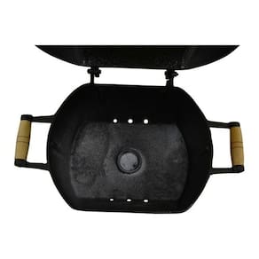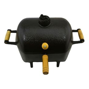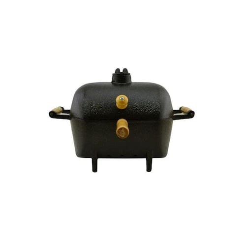 Para Utilizar em qualquer lugar. Com Grelha de alumínio com cabo e batoque de madeira, bem como, chaminé que pode ser fechada, na tampa superior para saída de fumaça. Não faz fumaça nem sujeira e cabe em qualquer lugar. Exclusiva pintura craqueada, churrasqueira toda preta. Exclusivo mecanismo para fechamento da chaminé.