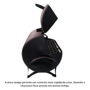 Meia Tampa para Controle Rápido de Temperatura: A meia tampa permite ajustar a temperatura interna de maneira eficiente, acelerando o processo de assar e proporcionando um churrasco mais rápido.