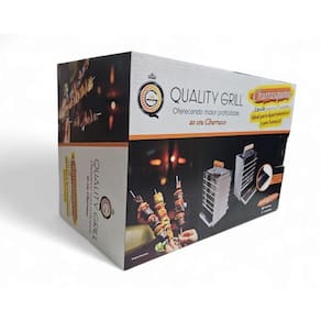 Principais Características: Sistema vertical com 6 espetos Medidas compactas: 32,5 cm (altura) x 20,5 cm (largura) x 15 cm (profundidade) Peso leve: apenas 2,5 kg fácil de transportar Acompanha bandeja coletora de gordura, caixa de carvão e tampa Ideal para carnes, queijo coalho, frango, coração e muito mais Estrutura em aço inox 430: resistente e durável