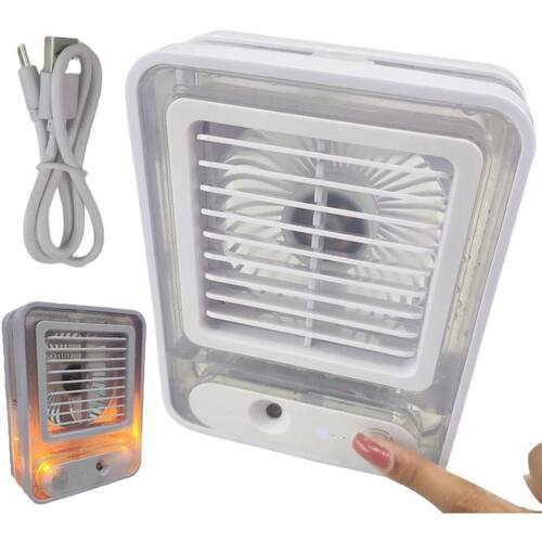 O Ventilador Umidificador é perfeito para o verão que está chegando, além de ser muito silencioso. Perfeito para uma noite de sono repousante, de trabalho ou estudo. Melhor ainda, seu ventilador umidificador não será uma distração, garantindo que você permaneça focado, tranquilo e produtivo. Ainda possui umidificar de ar, reduzindo a formação de congestionamento nasal e previne crises alérgicas. O ventilador umidificador possuiu 3 velocidades, led embutido, deixando o seu ambiente ainda mais reconfortante. Você pode carregador o seu mini ventilador em computadores, notebooks, onde você desejar. Garanta já o seu ventilador com umidificador. Para ligar o umidificador basta tocar o botão em formato de impressão digital delicadamente por 3 segundos Para ligar o ventilador basta tocar o botão em formato de impressão digital delicadamente e para trocar a velocidade tambem Para ligar a luz toque duas vezes no botão em formato de impressão digital Atençao: O produto possui um indicador de nível de água Não permita que a água ultrapasse o nível para não prejudicar o motor Atençao: O produto nao acompanha adaptador de tomada