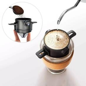 o mini coador de café é o item perfeito para desfrutar do cafézinho em qualquer lugar, sem necessidade de um filtro de papel. Possui abas retráteis, possibilitando se encaixar em diversos tipos de canecas e copos. Por não utilizar o filtro de papel, mantem o sabor do café, e reduz o desperdício de papel sendo ecologicamente correto. O filtro é fácil de utilizar e prático de limpar também, assim que terminar de usar, lave-o com água corrente. Indicações de uso - antes da primeira utilização, lave-o com água quente e detergente. Nunca leve ao fogão ou micro-ondas. Especificações técnicas: