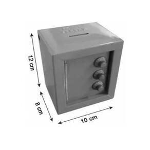 - Tamanho: 8cm de comprimento x 10cm de largura x 12,5cm de altura.- Com segredo.- Entrada para moedas e notas.- Material: Aço e Plástico. -Cor:cinza Marca: Não Informado