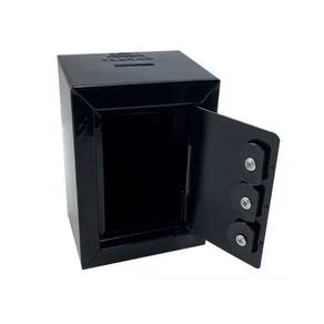 - Tamanho: 8cm de comprimento x 10cm de largura x 12,5cm de altura.- Com segredo.- Entrada para moedas e notas.- Material: Aço e Plástico. - Cor: preto Marca: Não Informado