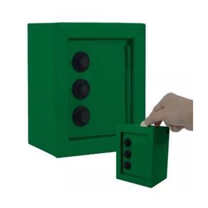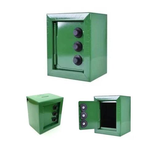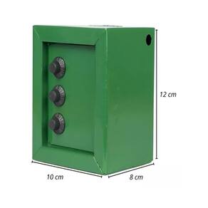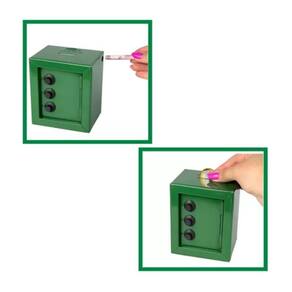Mini cofre cofrinho reforçado aço segredo notas moedas verde ----loja oficial do click compras na internet---- Somos um dos melhores vendedores do site, nossa missão é atender com amor e carinho nossos clientes, oferecendo sempre o melhor atendimento e produtos de excelência. São milhares de produtos entregues e clientes satisfeitos. ----loja oficial do click compras na internet---- O kit compõe todas as peças da foto principal Produto em Fechadura infalível Este dispositivo possui um sistema de abertura com uma combinação mecânica. Destaca-se por ser aberto digitando uma senha numérica, que é inserida manualmente girando as rodas. - tamanho: 8cm de comprimento x 10cm de largura x 12,5cm de altura. - com segredo. - entrada para moedas e notas. - material: aço e plástico. - cor: verde Marca: Não Informado