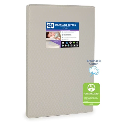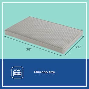 Mini colchão de berço de algodão respirável Sealy Baby, impermeável e sustentável para berços e berços portáteis, certificado GREENGUARD Gold, fabricado nos EUA, 38 x 24 polegadas — SEGURANÇA PREMIUM: o colchão de berço tem certificação GREENGUARD GOLD de qualidade do ar para mais de 10.000 produtos químicos e VOCs, criando um berçário interno mais saudável. Certificado CPSIA/Certificado ASTM para segurança. - CAPA DE ALGODÃO NATURAL RESPIRÁVEL: O tecido de algodão durável é respirável na pele do bebê. Uma barreira à prova d'água evita que vazamentos penetrem no colchão do bebê. - Ajuste perfeito para um mini berço portátil: tamanho de 38 x 24 x 2 polegadas testado para caber em mini berços. Espuma de fibra firme fabricada nos Estados Unidos, livre de espumas importadas ou qualquer espuma de poliuretano. - MINICOLCHÃO SUSTENTÁVEL: os colchões de berço Sealy são feitos com materiais de suporte selecionados para maior durabilidade, qualidade e segurança. O colchão para bebês oferece núcleo de fibra fabricado nos EUA com um design sensato e ecológico. - COLCHÃO DE BEBÊ MAIS CONFIÁVEL, FEITO NOS EUA: Sealy é a marca mais confiável e a marca de colchões de berço mais vendida nos EUA, com base em dados de vendas. O colchão de berço oferece garantia vitalícia em mão de obra e materiais. Design de canto quadrado para um ajuste confortável no berço!