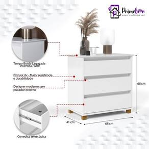 A Mini Cômoda EJ é um móvel versátil e funcional, possui acabamento UV e alto relevo, 03 gavetas sem puxadores externos para armazenar seus objetos, pés em madeira maciça e corrediças telescópicas. Um móvel produzido com material de qualidade, com design inovador e estrutura robusta para quem busca elegância e funcionalidade em um único produto.