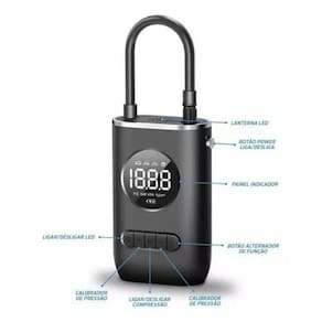 Mini Compressor Calibrador de Ar Digital Recarregável - Mantenha-se Preparado para Viagens sem Preocupações Compressor Portátil com bateria interna de 2000mah Recarregável, com visor digital . 1 - Sem fio, não necessita de conexão ao acendedor de . 2 - Compacto - Cerca de Altura 13,7 cm X Largura 8,9 cm, O tamanho é equivalente a um Smartphone com tela de 4,7, podendo caber facilmente no porta luvas, na moto ou em sua mochila. 3 - Leve - Peso de cerca de 395 gramas. 4 - Possui uma pequena lanterna para operação em locais de baixa iluminação. 5 - Interface de carregamento via cabo USB - Type C , mais rápido que os tradicionais incluso no kit . 6 - Acompanha bico para pneu com rosca sem perigo de soltar como as de alavanca , bico de pneu rápido, bico para bola, 2 bicos para infláveis e cabo de carregamento. OBS: Pausar por 5 minutos depois de usar por 10 minutos. Caso contrário, a temperatura crescente do escudo de metal danificará o motor. Especificação: Material: ABS 10A Tensão: 7,4V Potência: 50W Fluxo de ar: 25L / min Tipo de fonte de alimentação: TYPE-C Comprimento do cabo de alimentação: 0,8 metros Comprimento do tubo inflável: 0,5 Marca: Não Informado