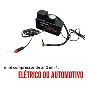 Mini compressor de ar automotivo 2x1 250psi 30l/min iwmcae30030 Voltagem: 220v Mini compressor de ar 2 em 1 250psi 30l/min importway Com o seu mini compressor de ar 2 em 1 da importway, as tarefas manuais que exigem pressão de ar serão muito mais simples, você economiza tempo e obtém excelentes resultados sem esforço. Você tem a opção elétrico e automotivo. Especificações: Marca: importway Modelo: iwmcae30030 Voltagem: 12v Elétrico - voltagem: 110v ou 220v não é bivolt 2 em 1 Pressão máxima: 250psi Fluxo de ar: 30l/min Mangueira de ar: 45cm Possui 4 bicos adaptadores Cabo de alimentação: 3 metros Cabo conecta no acendedor de do veículo ou na eletricidade. Conteúdo da embalagem: - 01 mini compressor de ar 2 em 1 250psi 30l/min importway Imagens meramente ilustrativas Marca: Não Informado