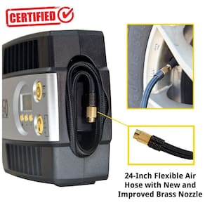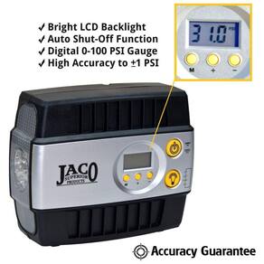 Tecnologia de pressão inteligente basta pré definir o manômetro digital integrado para sua pressão alvo PSI e ele desligará automaticamente quando atingido infla pneus de automóveis padrão de até 45 PSI e pneus de bicicleta de até 100 PSI. O medidor de ar digital integrado de precisão apresenta um display LCD brilhante com luz de fundo para uso noturno, medindo 0 100 PSI com precisão de 1 PSI infla o ar a uma taxa impressionante de 25L , min. A mangueira de ar mais longa e resistente de apresenta um bico de mandril giratório de latão durável, garantindo uma vedação segura e sem as mãos para a haste da válvula do pneu inclui 2 conjuntos de adaptador para bolas esportivas, colchões de ar e infláveis Equipado com um cabo de alimentação de de longo alcance para fácil acesso a cada pneu inclui adaptador de energia de qualidade premium que se conecta diretamente a qualquer tomada acessória de 12 volts DC em seu carro, caminhão ou SUV A luz LED brilhante embutida possui 4 configurações desligada, lanterna, vermelho intermitente e SOS de emergência Marca: Não Informado