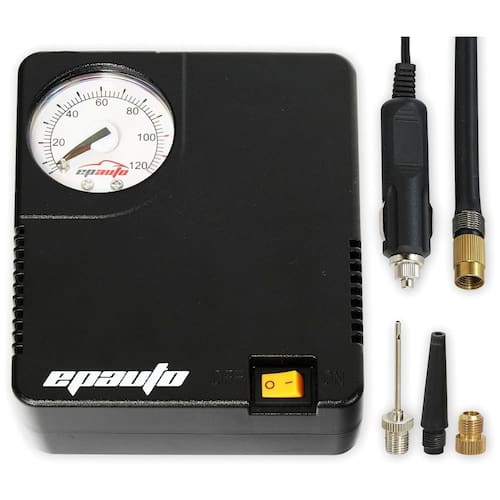 Conveniência conecte diretamente na tomada do isqueiro do seu veículo. Vários usos Encha pneus em carros, bicicletas, sedan e SUV de médio porte. NÃO SUPORTA pneus LT, HT e caminhão. Conjunto de adaptadores incluído Válvula Presta para bicicletas, Agulha de insuflação de ar e Bico Cônico de Plástico Compacto 15 x 12 x tamanho compacto para fácil zenamento. Insuflador de pneus 12V DC apenas para uso ocasional Marca: Não Informado