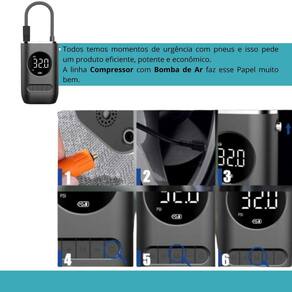Descrição do anúncio: Tenha sempre à mão o compressor de ar portátil digital, indispensável para inflar pneus de carros, motos, bicicletas, e até bolas. Compacto e potente, com função recarregável e lanterna integrada para emergências. Conteúdo da embalagem: 1 bomba de ar elétrica portátil recarregável Conjunto de bicos para diferentes tipos de válvulas Características: Portátil e compacto, ideal para transporte no carro ou em casa. Tecnologia digital com display de fácil leitura para ajuste preciso da pressão. Versatilidade para inflar pneus de veículos, bicicletas, bolas esportivas, entre outros. Desligamento automático ao atingir a pressão desejada para segurança durante o uso. Fácil uso com detecção automática de psi e modos pré-definidos. Especificações: Material: abs Corrente: 10a Potência: 120w Fluxo de ar: 25l/min Fonte de alimentação: usb type-c Comprimento do cabo de alimentação: 0.8m Comprimento do tubo inflável: 0.5m Dimensões aproximadas: 15x9.5x7.2cm Peso da embalagem: 525g Tensão de operação: 5v Principais perguntas sobre o produto e respostas: 1 esse compressor é adequado para pneus de carros e bicicletas - sim, o compressor é projetado para inflar pneus de carros, motos, bicicletas e outros objetos infláveis. 2 como funciona a detecção automática de psi - basta selecionar o psi desejado no display, e o compressor detecta e infla automaticamente até atingir a pressão configurada. 3 qual a oferecida - oferecemos de 90 dias para este produto. 4 esta formatação permite uma leitura mais direta e organizada das informações sobre o produto.