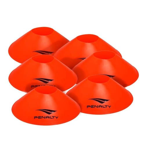 O Kit Mini Marker Set Penalty conta com 10 pratinhos de sinalização desenvolvidos para treinos, exercícios e jogos. Confeccionado em plástico resistente, também é um produto leve e durável. Acompanha um suporte para armazenagem e transporte.