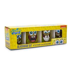 Silver Buffalo SG031SG1 Nickelodeon Bob Esponja Faces Mini conjunto de vidro, pacote com 4 - Feito de vidro - Comporta até 42,5 g de líquido - Conjunto de 4 mini copos - Não use no micro-ondas ou lava-louças - Não use produtos de limpeza que contenham alvejante ou cloro - Expresse seu amor por Bob Esponja Calça Quadrada com este mini conjunto de copos