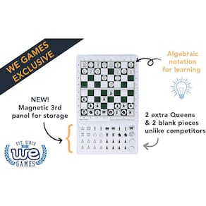 Leve seus jogos de xadrez para onde quiser com o Conjunto Mini Magnético de Bolso WE Games! Este conjunto compacto e portátil possui um tabuleiro magnético dobrável de 6 x 3,25 polegadas, perfeito para jogar a qualquer momento e em qualquer lugar. As peças magnéticas robustas garantem um jogo estável e sem interrupções