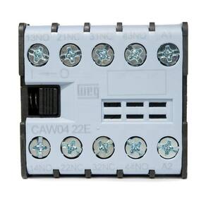 Mini contator caw042200v25 6a 220vac 2na+2nf azul weg destinados às diversas aplicações em circuitos de comando. possuem fixação para montagem rápida em trilho din en 50.002, ou parafuso, dimensões reduzidas e completa linha de acessórios. os contatores e minicontatores auxiliares das linhas cawm4, cwca0 e caw04 destinamse às mais diversas aplicações em circuitos de comando.