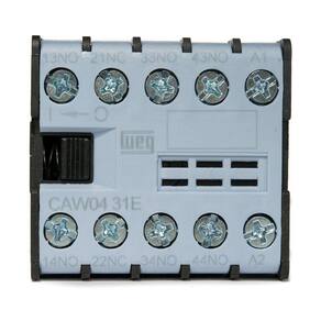 Mini contator az caw043100v25 6a 220vac 3na+1nf azul weg destinados às diversas aplicações em circuitos de comando. possuem fixação para montagem rápida em trilho din en 50.002, ou parafuso, dimensões reduzidas e completa linha de acessórios. os contatores e minicontatores auxiliares das linhas cawm4, cwca0 e caw04 destinamse às mais diversas aplicações em circuitos de comando.
