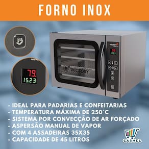 Forno Mini Convector 45 Litros Inox Com 4 Assadeiras 35x35 Wictory