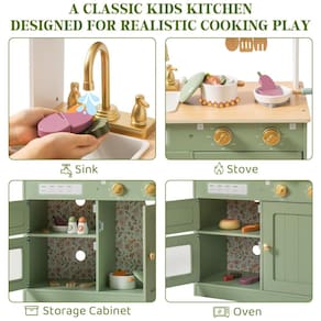 MATERIAIS PREMIUM PARA BRINCAR: A cozinha de brinquedo da ROBUD é feita com madeira premium cuidadosamente selecionada e tinta atóxica. Construída para mãos pequenas, as crianças podem desfrutar plenamente do tempo de brincadeira em uma cozinha projetada para seu bem-estar e segurança. COZINHA REAL, DIVERSÃO REAL: Este conjunto de cozinha de brincar tem tudo! Com pia e torneira, forno, prateleiras, armários e todos os utensílios de cozinha básicos, é como uma versão em miniatura de uma cozinha real. As crianças podem mergulhar em seu mundo de culinária imaginária, preparando pratos, organizando e limpando como adultos! DESIGN ENCANTADOR COM UM TOQUE ESPECIAL: Com sua adorável torneira dourada, esta cozinha de brincar não é apenas divertida, mas também elegante! É uma adição encantadora a qualquer ambiente, tornando o tempo de brincadeira ainda mais mágico, enquanto embeleza sua casa. APRENDER BRINCANDO: Com esta cozinha de brincar, as crianças podem explorar a independência! É uma forma lúdica de aprender responsabilidade, desde organizar os ingredientes até arrumar. Elas até terão um começo divertido com a segurança alimentar! ORGANIZADA E COMPACTA: Perfeita para salas de brinquedo ou quartos, esta cozinha de brincar é projetada com armários de armazenamento para manter tudo organizado. Quando a brincadeira acaba, tudo pode ser guardado, deixando o ambiente tão arrumado quanto antes.